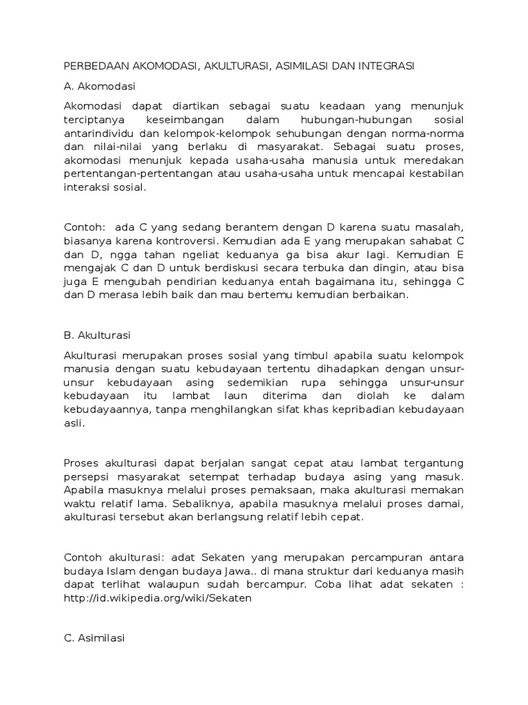 Contoh akulturasi dan asimilasi. Pengertian asimilasi dan akulturasi kebudayaan beserta contohnya lengkap oleh berpendidikan diposting pada 20 september 2015 16 maret 2019 salah satu bentuk penerimaan atau penyesuaian masyarakat terhadap perubahan sosial atau budaya baru yang datang adalah asimilasi. Akulturasi ekstrim paksaan yaitu proses akulturasi yang terjadi secara paksaan. Perubahan sosial budaya artikel lengkap contoh asimilasi. Contoh asimilasi kehidupan sehari hari di masyarakat jika kita membaca masalah budaya di indonesia pastilah sangat luas karena budaya di indonesia ini sangat banyak dan berhubungan erat dengan kebiasaan adat dan juga sesuatu yang mungkin di anggap penting oleh sebagian masyarakat. Akulturasi damai yaitu proses asimilasi yang terjadi secara damai tanpa ada paksaan dari budaya asing tersebut dan masyarakat menerima dengan baik kebudayaan asing tersebut. Kalau ada suatu nilai yang ditempatkan pada pengukuran budaya asal seseorang dan suatu keinginan menghindari interaksi dengan orang lain maka alternatif separasi didefinisikan.