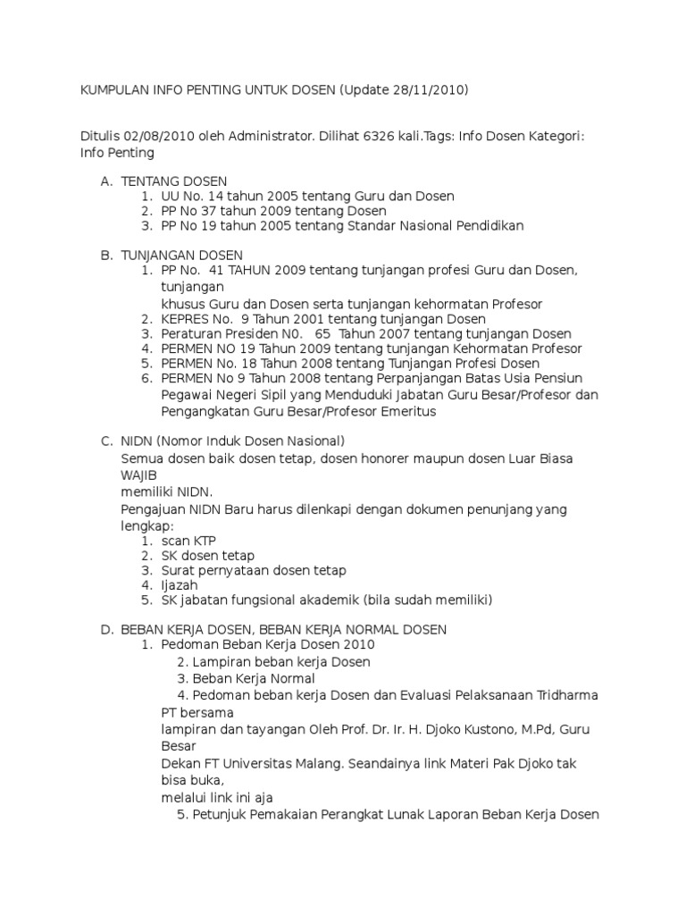 Draf naskah perjanjian kerja dosen kontrak. Pedoman beban kerja dosen 2010 d. Saling asah asih dan asuh 3. Sistem pendidikan nasional penjelasannya pp 41 tahun 2009. Sebutkan berapa mahasiswa contoh. Edaran bkd ganjil 2017 2018.