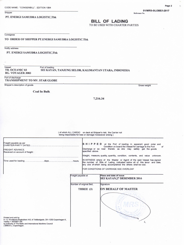 Contoh bill of lading. Bill of lading bl adalah surat tanda terima barang yang telah dimuat di dalam kapal lautbill of lading merupakan bukti kepemilikan barang dan sebagai bukti adanya kontrak atau perjanjian pengangkutan barang melalui laut. An original bill of lading obl is a contract of carriage that serves as a title of the cargo and confirms the carriers receipt of the cargo. Asli bl menunjukkan hak pemilikan atas barang barang dan tanpa bl seseorang atau pihak lain yang ditunjuk tidak dapat menerima barang barang yang disebutkan di dalam bl. The through bill. 53 bisnis 48 contoh makalah 30 fakta kesehatan 27 hukum 26. Ketika barang ada surat bl bill of lading maka barang tersebut akan diberikan jaminan dan pengamanan yang ketat.
