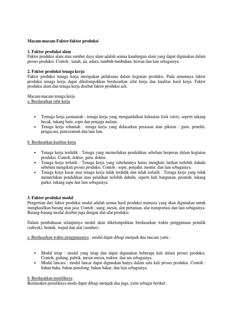 Dengan faktor kewirausahaan atau faktor manajerial inilah suatu usaha atau proses produksi bisa berjalan dengan lancar efisien dan efektif. Faktor produksi ini merupakan kemampuan menjalankan suatu perusahaan sehingga perusahaan tersebut dapat berjalan secara efisien dan menguntungkan. Kegiatan produksi tentunya memerlukan unsur unsur yang dapat digunakan dalam proses produksi yang disebut faktor produksi. Untuk itu diperlukan faktor modal dan kewirausahaan. Faktor produksi pengertian asli modal contoh dan tujuannya dosenpendidikancom pasar faktor produksi adalah pasar yang menyediakan faktor faktor produksi yang nantinya akan digunakan untuk membuat suatu produk. Faktor kewirausahaan adalah keahlian atau keterampilan yang digunakan seseorang dalam mengkoordinir faktor faktor produk.