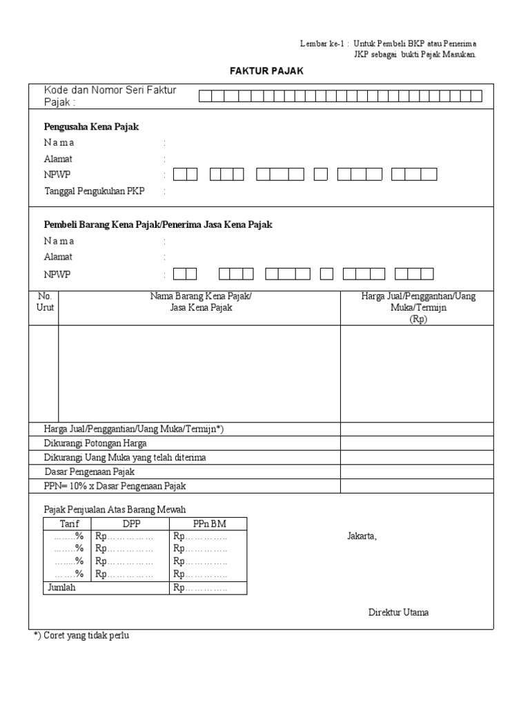 Pengusaha kena pajak wajib membuat faktur pajak untuk setiap penyerahan barang kena pajak sebagaimana dimaksud dalam pasal 4 huruf a atau huruf f dan untuk setiap penyerahan jasa kena pajak sebagaimana dimaksud dalam pasal 4 huruf c. Alat mengkreditkan ppn yang dipungut pkp sewaktu pembelian bkp atau jkp juga sesuai dengan pasal 13 ayat 5 uu ppn. Saya pernah baca artikel yang ditulis oleh ar kpp pratama denpasar barat dimana diberikan contoh faktur pajak pada kolom harga jualpenggantianuang mukatermin mengacu pada contoh di atas maka yang dicantumkan adalah nilai total dppppn atau 22000000 nanti pada kolom dasar pengenaan pajak baru dipecah menjadi 20000000 dan kolom ppn senilai 2000000 sementara pada contoh yang. Kewajiban membuat faktur pajak pasal 13 ayat 1 uu ppn 1984 menentukan. Ppn dipungut dasar pengenaan pajak dpp x tarif rp 4000000 x 10. Faktur pajak adalah bukti pungutan pajak pengusaha kena pajak pkp yang melakukan penyerahan barang kena pajak bkp atau penyerahan jasa kena pajak jkp.