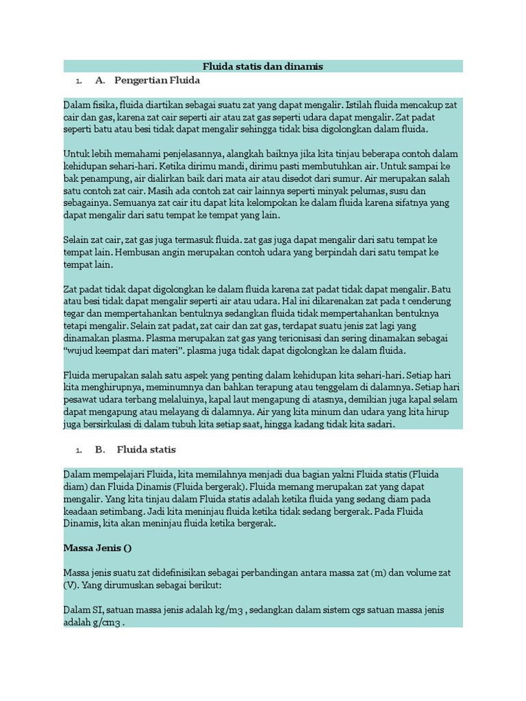Pengertian Fluida Statis Dan Dinamis Massa Jenis Tekanan
