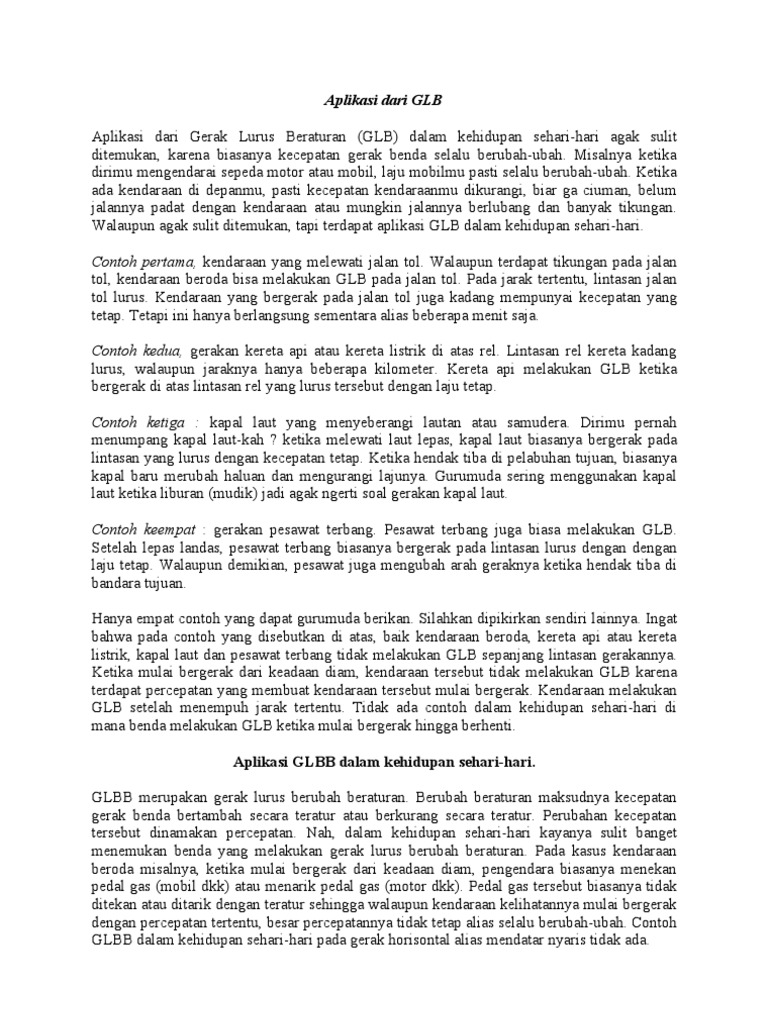 Contoh glb dalam kehidupan sehari hari. Tugas untuk besok lihat pembahasan yang lebih lengkap di brainly. Budi naik sepeda di jalan yang. Ketika mulai bergerak dari keadaan diam kendaraan tersebut tidak melakukan glb karena terdapat percepatan yang membuat kendaraan tersebut mulai bergerak. Penerapan glb dan glbb dalam kehidupan sehari hari. Contoh glb glbb dipercepat glbb diperlambat dalam kehidupan sehari hari. Share this article on.