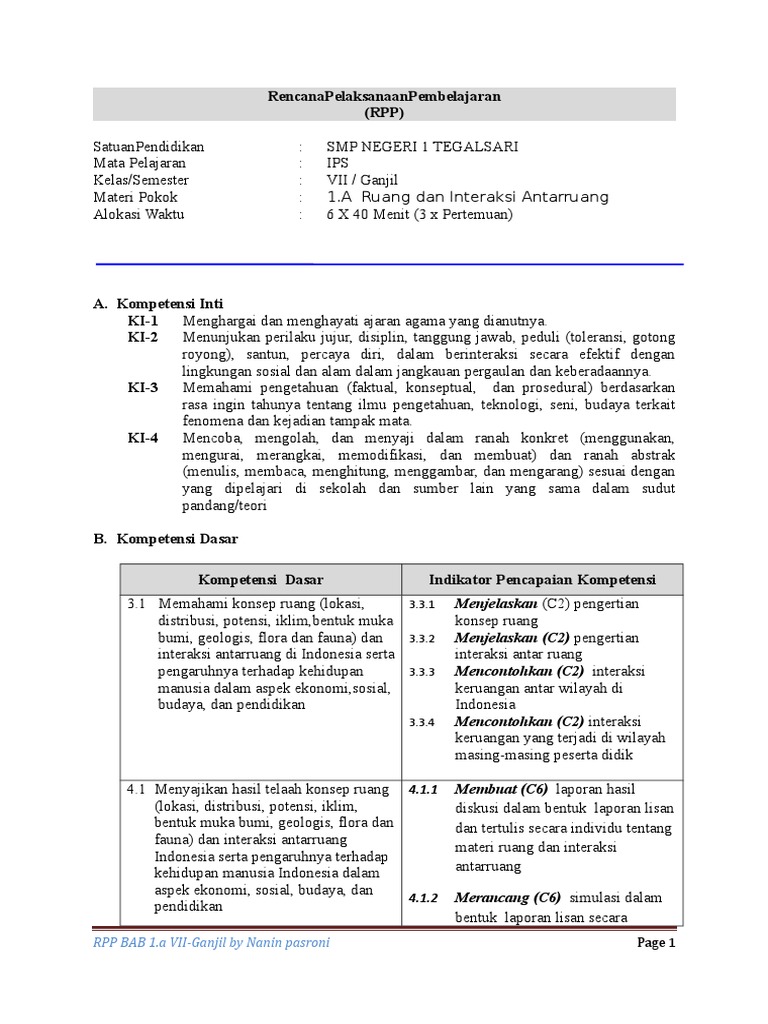 Rencana Pelaksanaan Pembelajaran Rpp