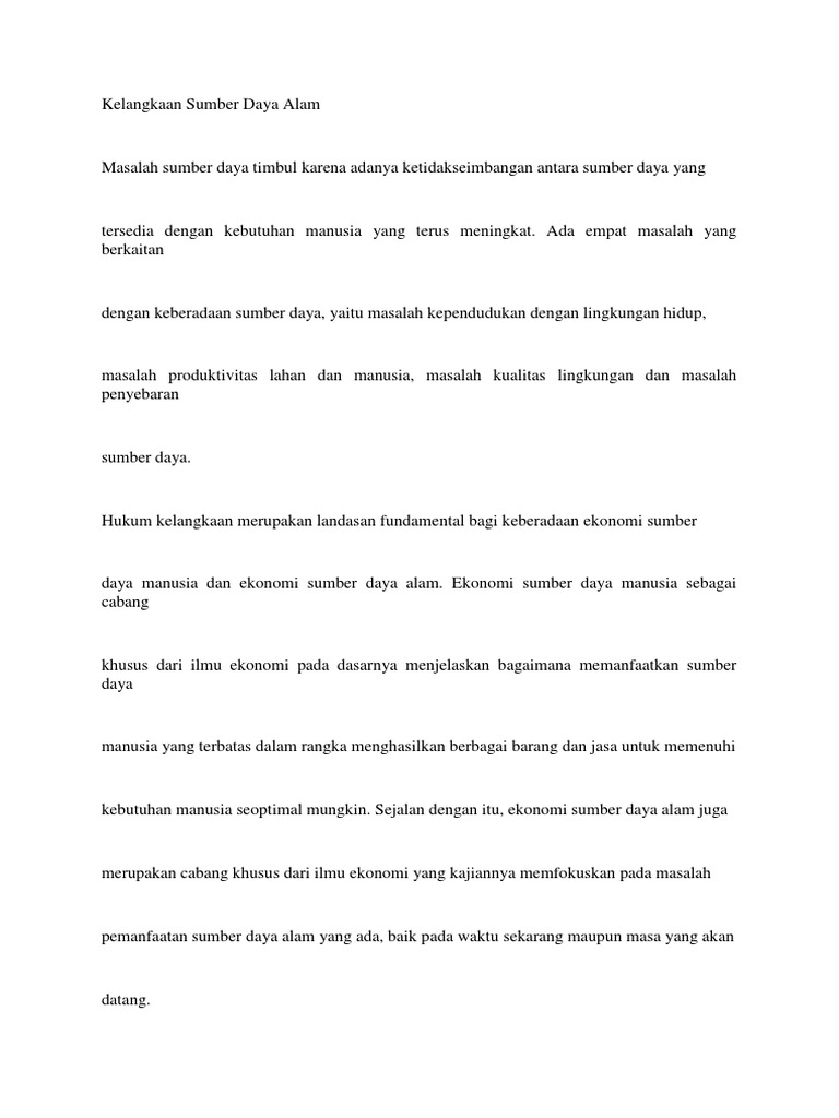 Contoh pengertian sumber daya ekonomi kelangkaan sumber daya alam manusia sda sdm modal kewirausahaan entrepreneurship macam macam jenis dalam ilmu ekonomi kelangkaan diartikan sebagai suatu keadaan terbatasnya sumber daya yang tersedia sementara masyarakat tidak memiliki sumber daya yang cukup untuk mengolahnya demi memenuhi kebutuhan yang tidak terbatas. Pendapat lain mengatakan definisi sumber daya alam sda adalah semua bahan atau zat seperti mineral hutan air serta tanah subur yang terdapat di alam dan dapat digunakan untuk keuntungan ekonomi bagi manusia. Kelangkaan sumber daya alam. Di lingkungan kita terdapat beraneka macam sumber daya alam. Kelangkaan dapat terjadi jika sumber daya yang ada terbatas sedangkan kebutuhan jumlahnya tidak terbatas. Meskipun manusia berusaha memperbanyak alat atau barang untuk memenuhi kebutuhan hidup tetapi sumber daya dan alat produksi yang ada terbatas jumlahnya.