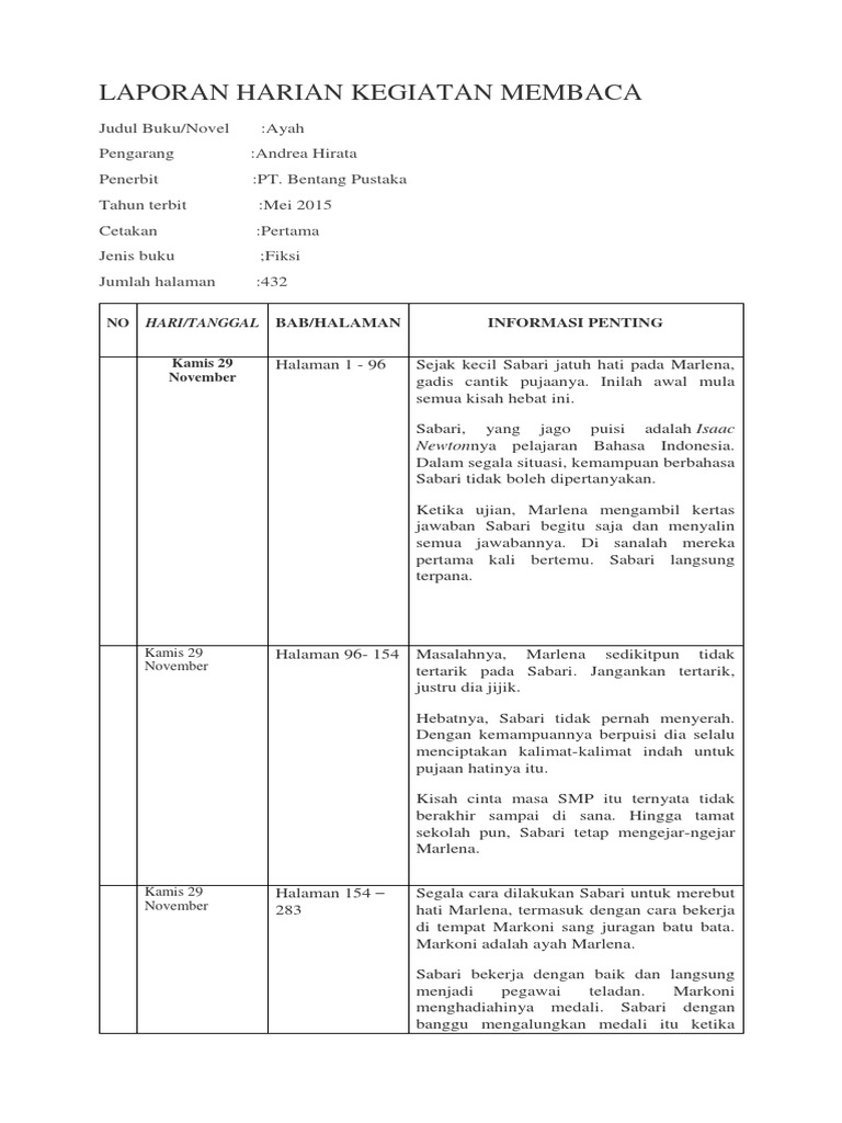 Contoh laporan kegiatan membaca buku non fiksi. Agar pembaca lebih mengerti berbagai alat proses pembentukan kata. Norbertus kaleka isbn. Dengan membaca buku ini dapat membantu remaja berkembang lebih baik dan menjadi generasi bangsa yang berguna. 112 halaman penerit. Laporan buku nonfiksi judul buku. Adapun maksud dan tujuan dari penulisan laporan ini adalah untuk memberikan pengetahuan mengenai bentuk bentuk dan pembentukan kata.