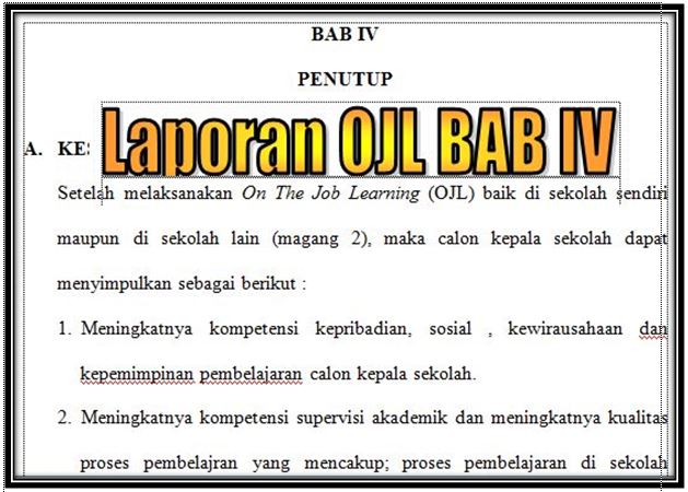 Berikut ini contoh laporan ojl cakep calon kepala sekolah lengkap meliputi ojl cakep 2016 contoh laporan ojl kompetensi manajerial contoh laporan ojl bab 3 contoh laporan ojl supervisi akademik contoh judul rtk. Hasil kompetensi calon kepala sekolah yang sudah meningkat yakni telah meningkatnya kompetensi supervisi akademik yang mencakup penyusunan perencanaan pelaksanaan analisis hasil supervisi akademik. Kegiatan on the job learning ojl dilaksanakan pada 2 sekolah magang yaitu pada sekolah tempat calon kepala sekolah bertugas dan sekolah lain.