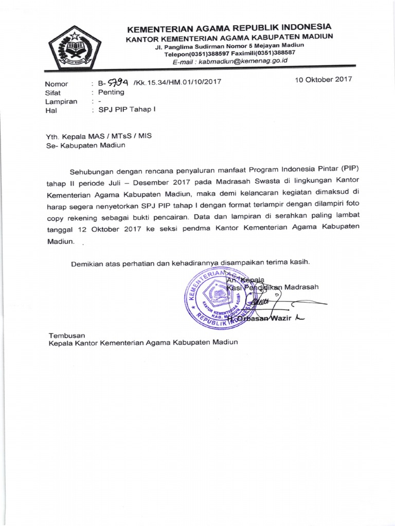 Selanjutnya daftar penerima tersebut dilengkapi dengan nama lengkap dan gelar serta ditandatangani dan distempel resmi oleh kepala sekolah atau pun bendahara skb pkbm lkp blk atau satuan pendidikan nonformal lainnya. Program simpanan keluarga sejahtera program indonesia pintar dan program indonesia sehat merupakan salah satu program unggulan pemerintah saatpemerintah berkewajiban memberikan rambu rambu yang jelas agar program ini berjalan efektif dan efesien sehingga mencapai sasaran yang diharapkan melalui intruksi presiden nomor 7 tahun. Laporan pertanggung jawaban bantuan penggunaan mampaat program indonesia pintar pip pada pondok pesantren katagori tahun 2017 di tujukan kepada yth kepala kantor kementerian agama kab garut cq kepala seksi pendidikan diniyah dan pontren pondok pesantren alamat kode post 44pondok pesantren kp. Pembuatan laporan lpj pip 2017 assalaamualaikum wr. Keckabupaten garut kodepos 441 nomor cigedug juni 2017 lamp laporan penggunaan dana. Dipermaklumkan dengan hormat untuk tertib administrasi dan kelancaran pelaporan program indonesia pintar pip maka dengan in kami sampaikan kepada seluruh kepala madrasah swasta mi mts dan ma se kab.