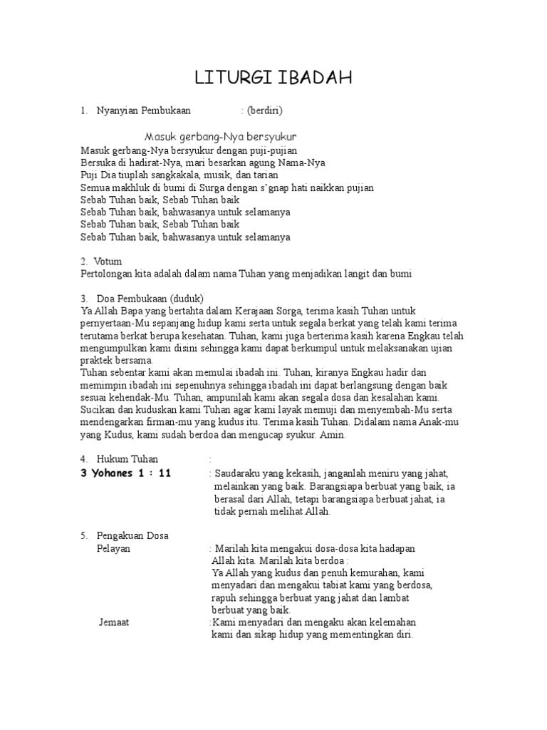 Keadaan dunia dengan persoalan yang menghimpit membuat hidup terasa begitu mencekam. Contoh susunan liturgi ibadah air kehidupan. Ya tuhan kami ingi berdoa untuk saudara i kami yang tidak dapat hadir dalam persekutuan kami ini. Akulah jalan dan kebenaran dan hidup. See more liturgi ibadah pemuda kreatif. Setiap gereja memiliki bentuk liturgi yang berbeda beda disesuaikan dengan dogma yang dianut gereja tersebut.