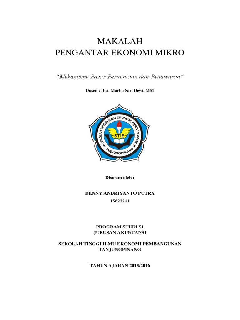 Contoh makalah ekonomi mikro. Berikut adalah contoh makalah teori ekonomi mikro. Kata pengantar puji dan syukur kepada tuhan yang maha kuasa karena bimbingan dan penyertaan nya sehingga saya dapat merampung makalah ini guna memenuhi tugas yang diberikan dosen pengajar pada fakultas ekonomi jurusan manajemen. Jumlah dan macam ragam kebutuhan manusia sangat banyak dan. Perencanaan dan pengaplikasian yang lebih baik dalam kehidupannya terutama yang berkaitan dengan kebutuhan hidupnya. Kebalikan dari ekonomi mikro ialah ekonomi makro yang membahas aktivitas ekonomi secara keseluruhan terutama mengenai pertumbuhan ekonomi inflasi pengangguran berbagai kebijakan perekonomian yang berhubungan serta dampak atas beragam tindakan pemerintah misalnya perubahan tingkat pajak terhadap hal hal tersebut.