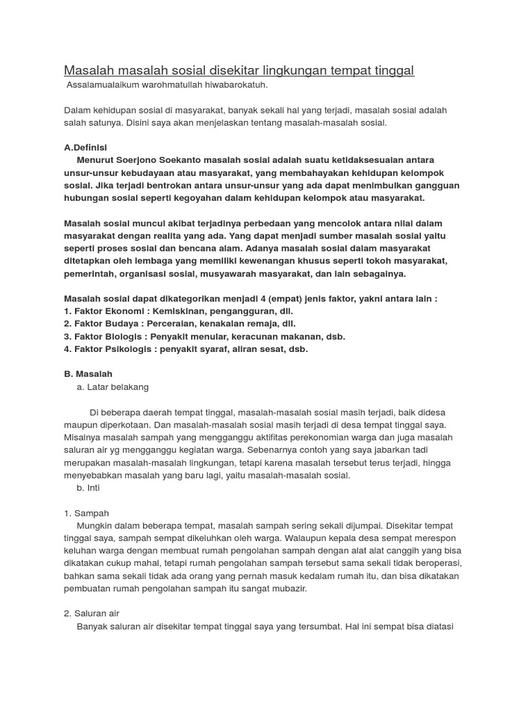 Contoh masalah sosial di lingkungan masyarakat. Berikut ini adalah beberapa contoh masalah sosial tersebut. Berikut beberapa contoh konflik sosial dalam masyarakat yang pernah terjadi di indonesia yang dirangkum dari pemberitaan beberapa media massa serta data dari bnpb. Pada artikel kali ini akan dibahas pengertian lingkungan hidup dan contoh masalah lingkungan hidup yang dialami masyarakat. Keberadaan masalah sosial dapat dipahami dengan adanya suatu kondisi yang dapat meresahkan beberapa kelompok maupun masyarakat tertentu menyebabkan adanya tuntutan untu melakukan suatu perubahan dan menemukan solusi untuk menghentikan permasalahan tersebut. Pemasalahan sosial muncul akibat adanya beragam jenis interaksi sosial dan adanya ketimpangan sosial yang ada di lingkungan masyarakat. Berdasarkan penjelasan mengenai masalah sosial di atas dapat disimpulkan bahwa masalah sosial merupakan suatu keadaan yang tidak kondusif terjadi di dalam lingkungan masyarakat dan menimbulkan dinamika tersendiri dalam kehidupan bermasyarakat.