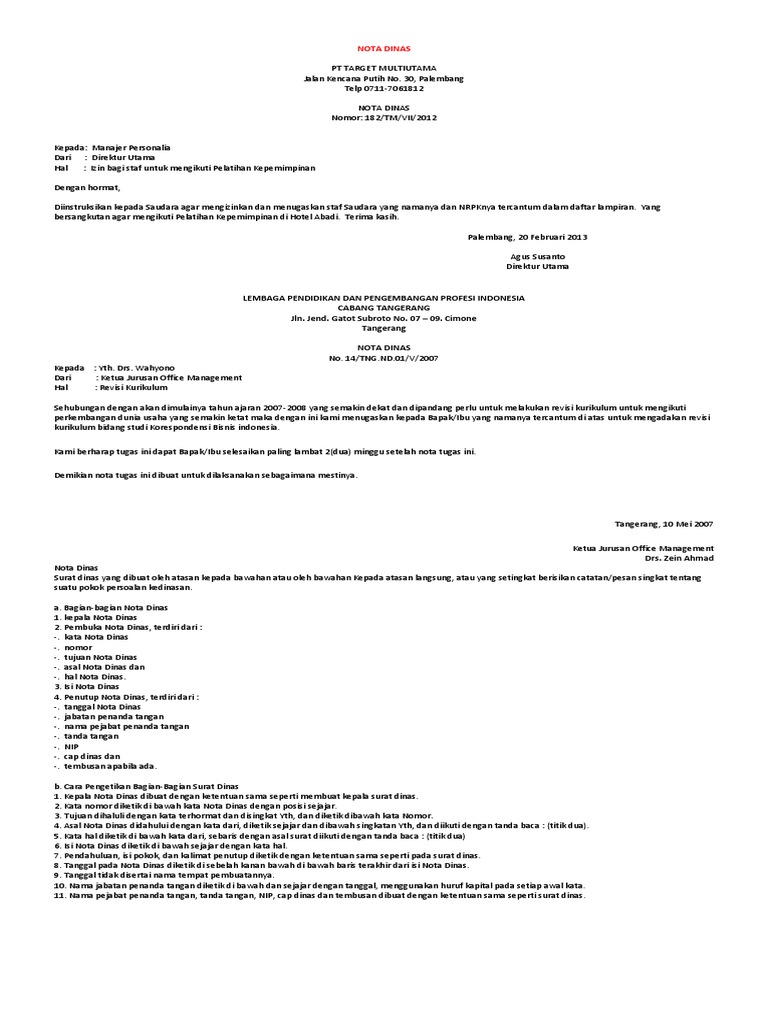 Contoh surat pengantar memiliki banyak sekali macam macamnya. Nota dinas memuat hal yang bersifat rutin berupa catatan ringkas yang tidak memerlukan penjelasan yang panjang dan dapat langsung dijawab dengan disposisi oleh pejabat yang dituju tata naskah dinas. Pengertian tujuan fungsi ciri syarat jenis struktur dan contohnya secara umum surat merupakan suatu sarana komunikasi untuk menyampaikan informasi dalam bentuk tulisan pada kertas oleh satu pihak kepada pihak lainnya baik perorangan maupun organisasi. Contoh nota contoh nota dinas contoh nota penjualan contoh nota kesepakatan contoh nota toko contoh nota retur contoh nota kosong contoh notasi ilmiah contoh notam contoh nota retur pajak contoh nota belanja kosong contoh nota dinas penempatan pns contoh nota doc contoh nota kue contoh nota kaki contoh nota word contoh nota excel contoh nota galon contoh nota minta contoh. Contoh nota dinas pada instansi pemerintahan untuk perjalanan dinas dan narasumber contoh nota dinas merupakan hal penting yang harus anda ketahui karena nota dinas ini berfungsi untuk menyampaikan informasi secara formal antara pihak satu ke pihak lainnya dalam instansi pemerintahan atau swasta. Masih bingung mencari contoh nota dinas atau memo.