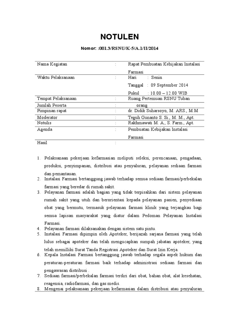 Contoh notulen rapat doc. Berisi pengertian notulen tugas notula dan contoh notulen. Pada notulen rapat memiliki bentuk padat singkat ringkas dan sistematis agar ketika acara sudah selesai seseorang dapat mengetahui hasil rapat sebagai bahan dokumentasi. Buku notulen rapat guru komitedocx ini diupload ke google drive dengan format spreadsheet xlsx. Contoh notulen rapat notula atau notulen rapat adalah sebuah catatan singkat mengenai rapat atau persidangan termasuk hal yang dibicarakan dan diputuskan. Contoh notulen rapat sebuah organisasi yang baik tentu harus memiliki administrasi yang baik pula. Contoh notulen rapat notulen merupakan salah satu hal yang wajib ada dalam setiap rapat maupun diskusi.