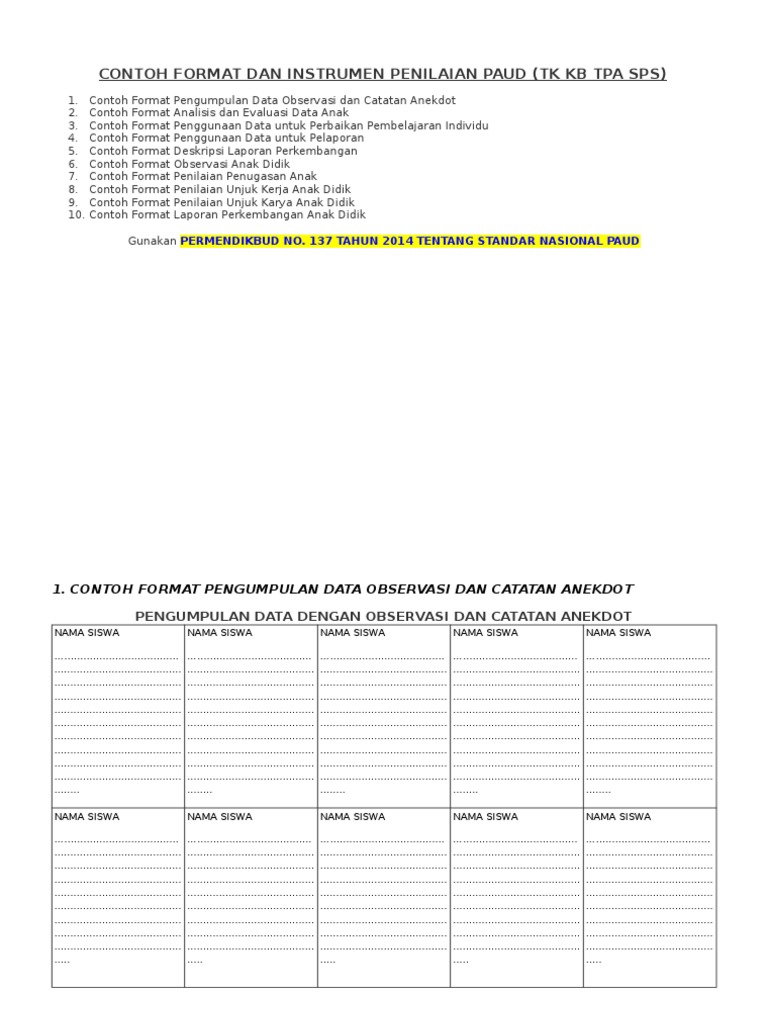 Contoh Format Buku Catatan Anekdot Paud Tk Kb Tpa Sps Paud