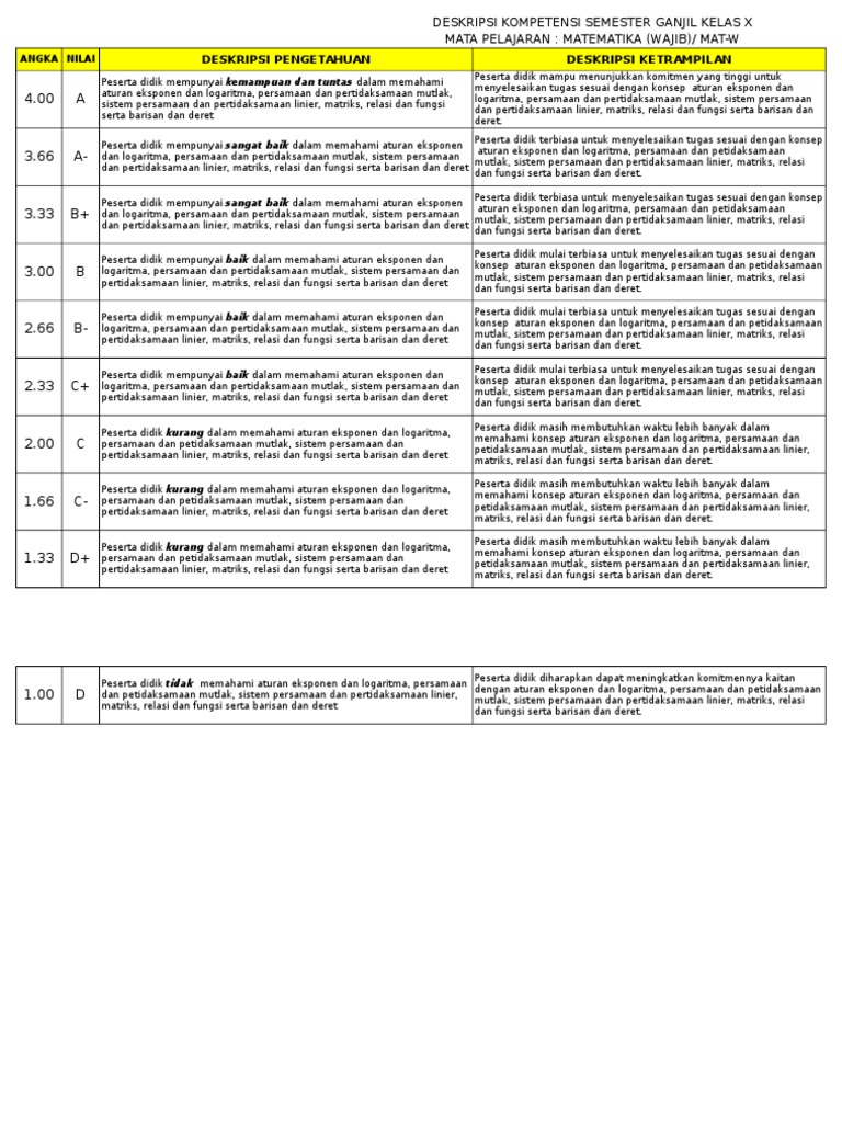 Penulisan deskripsi penilaian kurikulum 2013 hasil revisi untuk penulisan raport dengan dua kompetensi sikap spritual dan sosial edisi k13 revisi akhir 2016 yang mungkin bapak ibu harus cermati cara penulisan hasil belajar melalui deskripsi pada aspek sikap yang akan di olah. File guru co id. Berikut cara pengolahan nilai keterampilan mata pelajaran bahasa indonesia kelas x yang dilakukan melalui praktik pada kd 41 sebanyak 1 kali dan kd 42 sebanyak 2 kali. Contoh penulisan deskripsi raport kurikulum 2013 revisi 2016 ini merupakan informasi terbaru tentang penulisan deskripsi raport kurikulum 2013 yang berlaku untuk semua tingkatan sekolah mulai dari sdmi smpmts smamasmk yang menggunakan kurikulum nasional. Selanjutnya penulisan capaian keterampilan pada rapor menggunakan angka pada skala 0 100 dan predikat d a serta dilengkapi dengan deskripsi singkat capaian kompetensi.