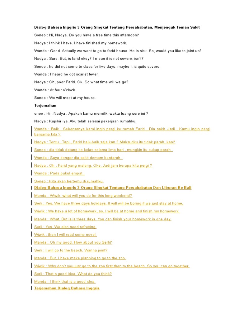 2 contoh percakapan singkat bahasa inggris untuk 3 orang dan artinya. Untuk setting pakaian dan efek lainnya silahkan kalian eksplore sendiri dengan kemasan yang menarik dan dapat memicu penonton tertawa terbahak bahak dengan apa yang akan kalian sajikan sebagai. Conversation at the restaurant for 3 people. Tetapi banyak sekali dari para newbie baik di sekolah. Contoh percakapan dalam bahasa inggris dan terjemahannya. Sahabat pada kesempatan kali ini admin akan memberikan contoh percakapan bahasa inggris 3 orang di restaurant beserta artinya.