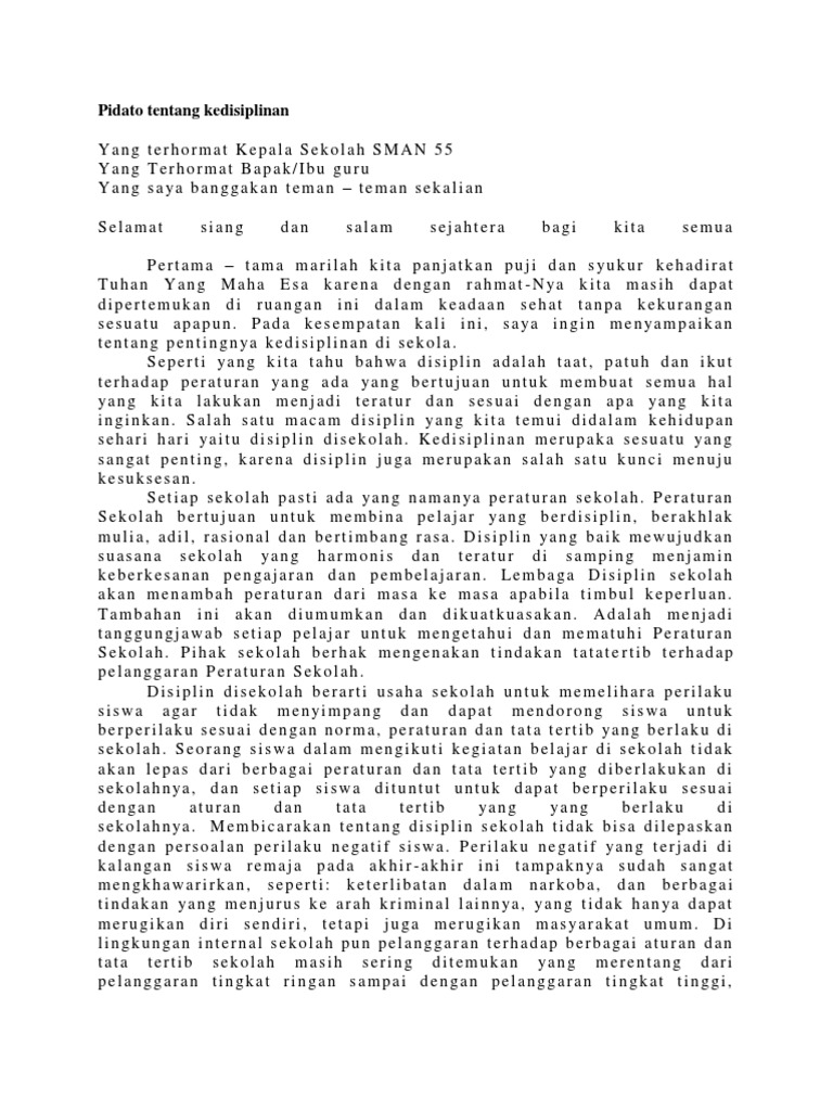 Perilaku negatif yang terjadi di kalangan siswa remaja pada akhir akhir ini tampaknya sudah sangat mengkhawarirkan seperti. Berikut adalah pengertian pidato singkat fungsi pidato singkat macam macam pidato singkat beserta contoh teks pidato singkat. Pidato pembelajaran cerita islami tips busana. Banyak orang yang mengalami kegagalan dalam hidupnya karena kurangnya kedisiplinan yang diterapkan dalam. Menyiapkan diri memenangkan dunia kerja penuh persaingan. Biasanya pidato ini sering disampaikan di kantor dinas maupun di lembaga pendidikan.