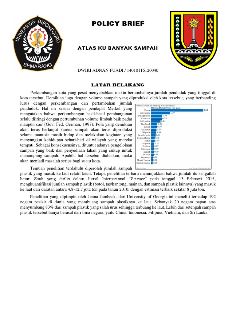 Contoh policy brief tentang sampah. Oleh karena itu permasalahan yang dikaji dalam policy paper ini berkaitan dengan implementasi peraturan tersebut di lapangan terutama masalah pengelolaan masalah. Kebakaran per tahun yang mengacu pada kebakaran yang terjadi ditahun sebelumnya 13 keputusan gubernur no. Melalui asas rekognisi dan subsidiaritas uu no. Seringkali lingkungan di sekitar kita tersebut jarang diperhatikan sehingga dapat menimbulkan suatu penyakit seperti flu batuk penyakit sesak nafas dan lain sebagainya oleh karena itu perlu diperhatikan bahwa kebersihan lingkungan sekitar kita itu untuk kepentingan bersama. Afsdy saksono eko prasojo dan andreo wahyudi atmoko. Policy brief betujuan untuk mengukur potensi kewenangan dan anggaran yang dimiliki desa yang dapat diarahkan pada program program desa untuk mitigasi perubahan iklim.