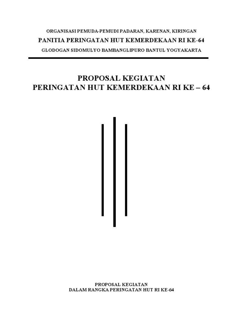 Proposal hut ri ke 74 pdf. Saya juga punya contoh proposal 17 agustus. Jadi anda tidak perlu khawatir mendownload dan menggunakan file file ini di perangkat komputer anda. Sekedar mau nambahin aja gan. Contoh proposal kegiatan hut ri. Pada saat memperingati hari kemerdekaan indonesia pasti akan ada banyak sekali pesta rakyat dan berbagai macam kegiatan untuk menyambutnya.