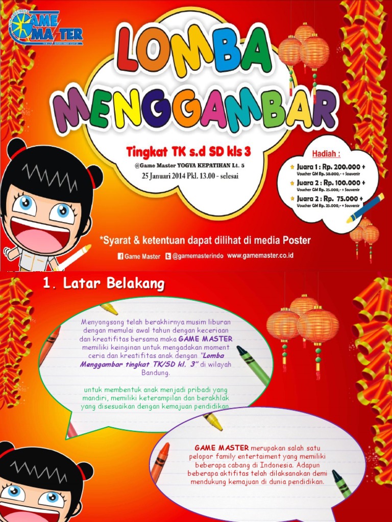 Lomba mewarnai gambar sering diadakan pada acara perayaan tertentu. Merupakan proposal yang berisi tentang rencana atau usulan penelitian praktek lapangan lomba karya tulis ilmiah skripsi tesis dan lain lain. 28000 pembuatan proposal rp. Latar belakang dalam memaknai peringatan hari jadi kabupaten madiun 668 dan hut ri ke 68 panitia hari besar nasional kecamatan dolopo menyelenggarakan rangkaian peringatan yang memiliki kepedulian terhadap perkembangan dan kemajuan pendidikan. Contoh proposal lomba mewarnai. Gatot subroto 0205 jatake jatiuwung tangernag.