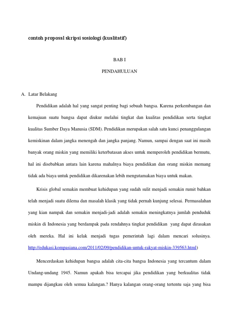 Contoh proposal skripsi kualitatif. Academiaedu is a platform for academics to share research papers. Sugiyono metodologi penelitian kuantitatif kualitatif dan r d bandung. Proposal penelitian kualitatif oleh. Contoh lengkap proposal metode penelitian kualitatif pada kesempatan kali ini saya akan memberikan contoh lengkap dalam pembuatan proposal metode penelitian kualitatif yang baik dan benar untuk menjadikan refrensi ataupun contoh untuk pembuatan penelitian kualitatif yang sebenarnya. Saliman fpips ikip yogyakarta i. 10 contoh judul skripsi sdm kualitatif dan komponen 20 contoh judul penelitian kualitatif psikologi cara membuat proposal skripsi dengan benar bab i komponen dan contoh proposal penelitian kualitatif 4 teknik pengumpulan data lengkap dengan penjelasannya.