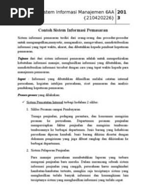Contoh sistem informasi pemasaran. Perbedaan komponen komponen ini antar sistem sistem informasi lainnya adalah konteks letak dari sistem informasinya. Perbedaan komponen komponen ini antar sistem sistem informasi lainnya adalah konteks letak dari sistem informasinya. Sistem informasi pemasaran mempunyai komponen yang sama dengan sistem informasi secara umum yaitu komponen komponen input model output basis data teknologi dan kontrol. Pengertian manajemen pemasaran fungsi tujuan konsep strategi dan contoh. Definisi sistem informasi pemasaran sistem informasi pemasaran diatur pengumpulan data yang rencananya akan digunakan dalam analisis solusi pemasaran dan untuk menetapkan prosedur dan metode untuk menyajikan informasi. Oleh karena itu perusahaan harus menggunakan sistem informasi yang baik tujuannya tak lain adalah agar perusahaan tersebut dapat mengontrol bagaimana perkembangan berbagai bidang di perusahaan tersebut dengan baik terutama untuk sektor pemasaran.