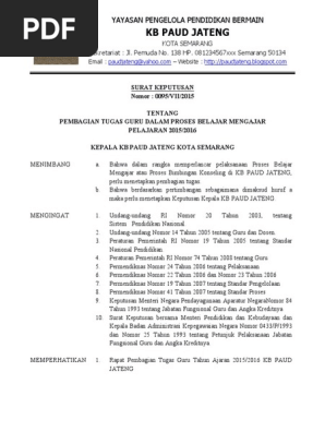 Contoh sk pembagian tugas mengajar guru. 1314 contoh sk.
