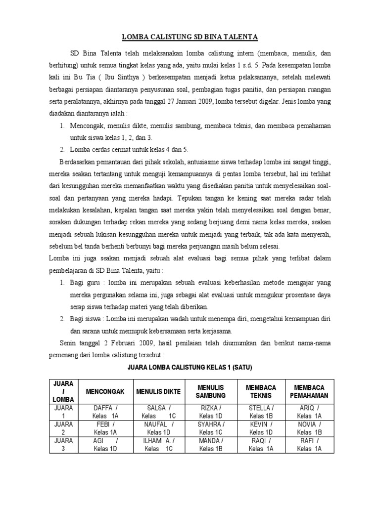 Doc Lomba Calistung Sekolah Dasar Kelas Iii Tiga Tahap I