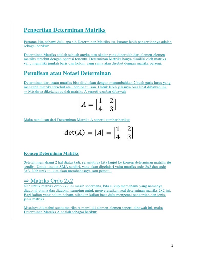 Mengenal pengertian ordo matriks menentukan determinan suatu matriks menentukan nilai x yang memenuhi persamaan matriks dan konsep kesamaan matriks. Determinan matriks ordo 3 x 3. A b t a t b t a t t a ca t cat c adalah konstanta ab. Tentukan nilai determinan matriks. Kali ini materi yang akan dibahas adalah bagaimana cara menentukan determinan matriks yang meliputi pengertian sifat sifat dan beberapa contoh. Matriks ordo 3 adalah matriks bujur sangkar dengan banyaknya kolom dan baris sama dengan tiga.