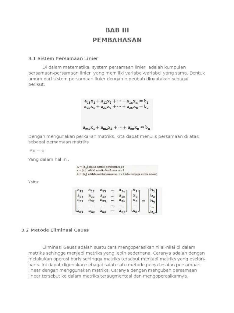 Matrik perluasan dari spl di atas adalah. Untuk mendapatkan link penyelesaian dari permasalahan tersebut silahkan klik disini. Selesaikan sistem persamaan linear berikut dengan metode gauss jordan. X1 3x2 3x3 8. Ini dapat digunakan sebagai salah satu metode penyelesaian persamaan linear dengan menggunakan matriks. Dengan melakukan operasi baris sehingga matriks tersebut menjadi matriks yang baris.