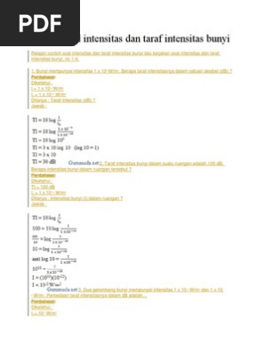 Jawab intensitas berbanding lurus dengan jumlah sumber bunyi. Contoh soal intensitas bunyi dan taraf intensitas bunyi dengan pembahasanya contoh contoh soal di bawah ini ditulis dengan bahasa matematika khusus bisa dibaca dalam mobile version dan penulisan matematikanya bisa dibaca dalam web version. 111 x 10 6 wm 2 c. Dua mesin identik yang sedang bekerja bersama menghasilkan intensitas bunyi sebesar. 30 db 10 9 wm 2. Jarak titik a dari sumber.