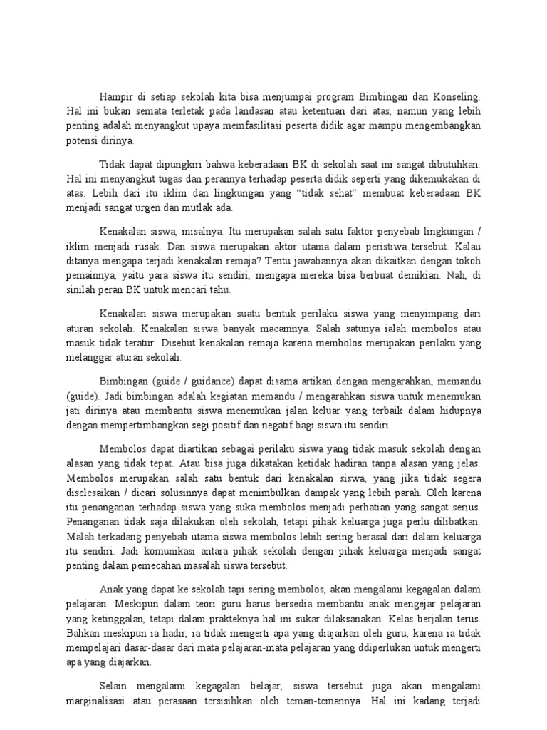 Dari siswa sebanyak 15 orang untuk penyebab siswa membolos pelajaran karena pelajaran yang kurang disukai sebanyak 7 siswa dan penyebab siswa membolos pelajaran karena guru yang tidak menyenangkan sebanyak 3 siswa. Contoh studi kasus bimbingan dan konseling studi kasus. Penulis selanjutnya tertarik untuk menjadikan bahasan tersebut sebagai studi kasus. Identifikasi penulis dalam penulisan studi kasus ini yaitu kesulitan belajar siswa smp darussaadah teupin raya. Kata bolos sangat populer dikalangan pelajar atau siswa baik di sekolah dasar atau di tingkat menengah. Terkadang masih membolos.