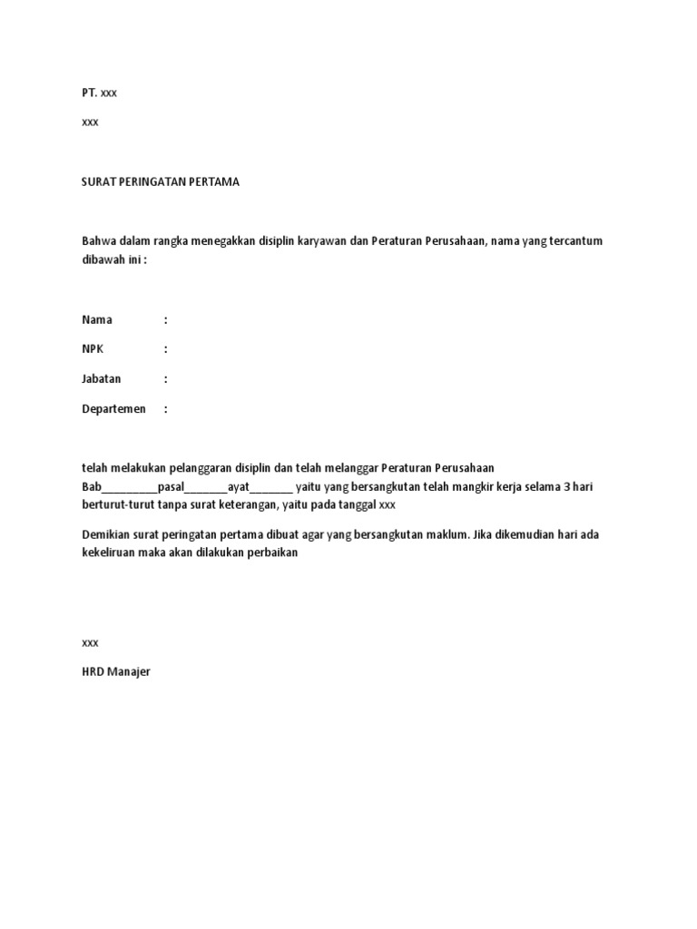 Contoh surat teguran dalam kehidupan sehari hari tentu kita pernah ditegur oleh seseorang entah dari keluarga teman dan orang lain. Surat ini merupakan jenis surat yang dikeluarkan oleh suatu instansi tertentu ataupun perusahaan tertentu yang ditujukan kepada karyawan dan pihak pihak yang bersangkutan yang melanggar ketentuan dan aturan yang ada. Contoh surat peringatan karyawan sebagai teguran tertulis bagi karyawan yang telah menyalahi melanggar ketentuan atau peraturan yang berlaku di perusahaan pihak perusahaan berhak untuk mengeluarkan surat teguran yang berbentuk surat peringatan sp1 sp2 sp3 sesuai dengan tingkatan kesalahan yang telah dilakukan. Teguran baik adalah teguran yang disampaikan dengan maksud menyapa seseorang. By contohsuratlengkap in types presentations surat and surat peringatan. Sp merupakan singkatan dari surat peringatan adapun angka 1 2 3 adalah tingkatan surat peringatan yang diberikan kepada karyawan tersebut.