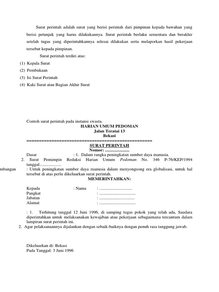 Contoh surat perintah tugas dari perusahaan. Contoh surat perintah tugas perusahaan swasta how to 7 contoh surat dinas resmi pemerintah perusahaan sekolah sesuai 10 contoh surat permohonan danasponsorkerjasama dll. Pengertian surat tugas seperti kita tahu dalam dunia kerja banyak sekali macam macam surat salah satunya adalah surat tugas. Jika anda sedang mencari informasi mengenai surat tugas saat ini anda membaca artikel yang tepat. Contoh surat tugas surat perintah tugas terima kasih kepada para pembaca yang telah mengunjungi situs kami. Kali ini yang akan menjadi topik pembahasan kita adalah mengenai contoh surat tugas lengkap terbarulalu apa itu surat tugas dan bagaimana bentuk dari surat tugas itu sendiri. Penggunaan surat perintah di perusahaan misalnya bisa diterbitkan di kantor cabang.