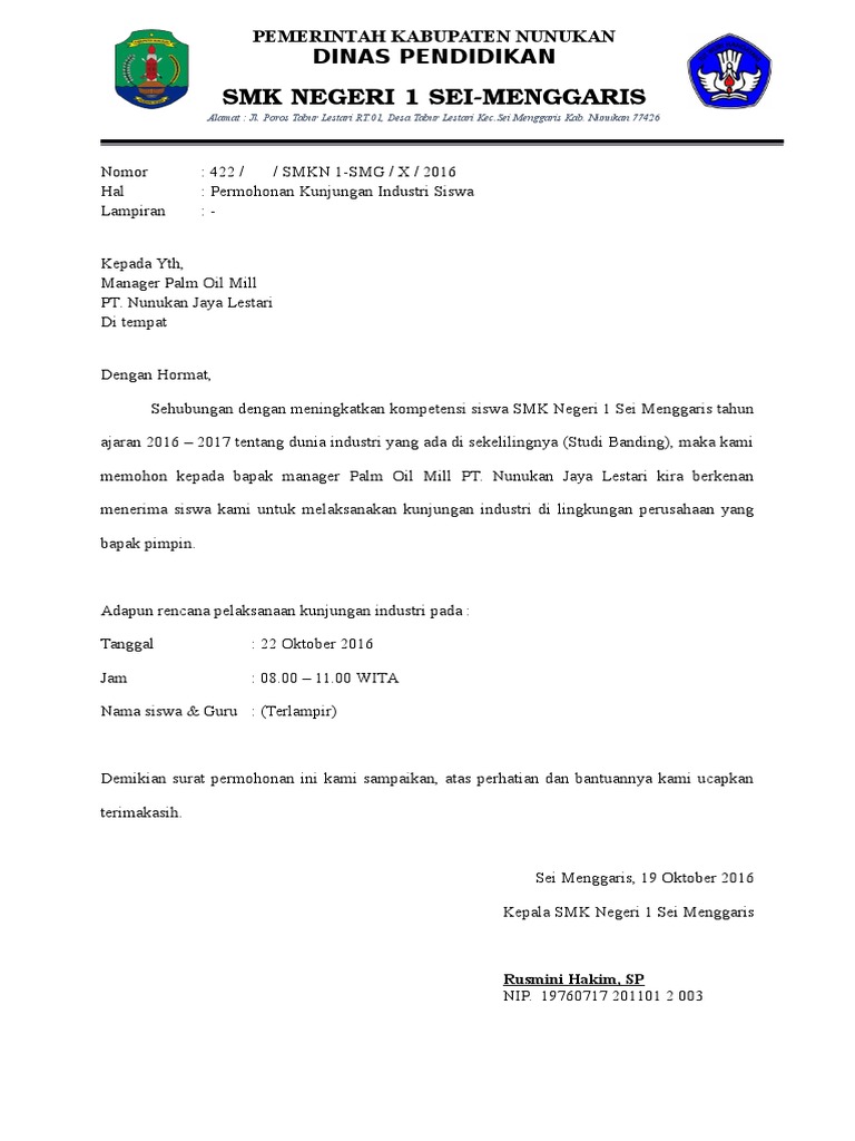 Contoh surat permohonan kunjungan industri. Sumedang 04 desember 2013 mengetahui kepala sekolah ketua panitia achmad syukur s. Demikian surat permohonan izin kunjungan ini kami sampaikan atas perhatian dan kerjasamanya kami ucapkan terima kasih. Berikut ini adalah contoh dari contoh surat permohonan izin kunjungan mahasiswa ke perusahaan atau pabrik kegiatan studi ekskursie seperti dibawah ini. Surat permohonan kunjungan industri pertanian download. 19600523 198501 1 002. Surat keluar dan surat masuk adalah pekerjaan yang biasa kita lakukan selaku staff tata usaha pada kesempatan kali ini admin akan mencoba membagikan contoh surat keluar yaitu surat permohonan kunjungan.