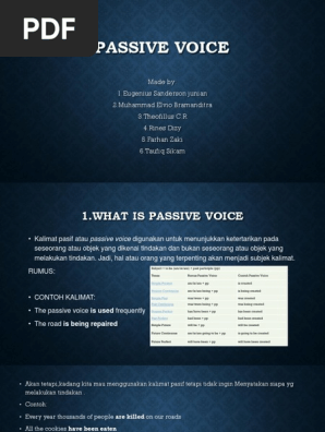 Di makan was ate di lihat was see di buat are made dan lain sebagainya. Passive voice in report text title. Pada passive voice subject kalimat tidak melakukan suatu tindakanaksi melainkan subject menerima tindakanberbeda dengan kalimat aktif dimana subjek bertindak sebagai pelaku tindakan. Passive voice adalah jenis kalimat atau klausa di mana subjek menerima tindakan dari kata kerja. 30 contoh kalimat passive voice simple present tense begitu sederhana dan mudah dipahami. Kalimat pasif ditandai dengan adanya kata kerja yang mengandung awalan di.