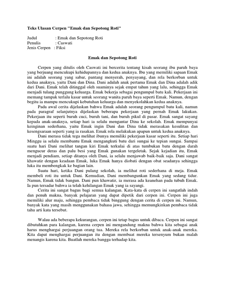 Contoh teks ulasan cerpen. Posting pada sma smk smp ditag bab 4 meneladani kehidupan dari cerita pendek buku kumpulan cerpen cerpen adalah dan contohnya cerpen adalah dan contohnya brainly cerpen beserta struktur teks ulasan cerpen cinta cerpen itu apa sih cerpen pendidikan cerpen pendidikan dan unsur intrinsiknya cerpen persahabatan cerpen singkat terbaru 2018 cerpen tentang kehidupan ciri ciri teks. Teks ulasan adalah sebuah tulisan yang berisi ulasanpenilaianreview terhadap sebuah karya milik orang lain. Penilaian yang disampaikan atau dituangkan dalam teks ulasan ini harus kritis tidak boleh ada maksud lain di dalam sebuah teks ulasan yang dibuat. Akan tetapi sebelum menuju ke contoh teks ulasan terlebih dahulu pembaca harus mengetahui apa itu. Pada saat kita membaca buku kita harus mencerna buku bacaan tersebut dengan seksama agar kita dapat memahami isinya. Teks ulasan dapat juga disebut dengan resensi suatu teks mengenai penilaian terhadap suatu karya dapat berupa film novel buku atau cerpen.