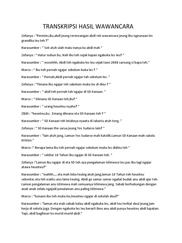 Latar belakang narasumber adalah. Tujuan dari wawancara yaitu untuk mendapatkan informasi yang tepat dan aktual dari narasumber yang tepercaya. Secara umumnya kegiatan wawancara ini dapat dilaksanakan oleh berbagai macam cara seperti. Sunday 14 february 2016 bahasa daerah edit ngawawancara tukang warung. Contoh teks wawancara bahasa sunda. Teh enong si pangusaha peuyeum.