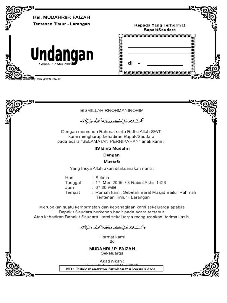 Surat undangan pengajian pernikahan ini bersifat pribadi dan tidak ada paksaan untuk hadir. Hallo sahabat chord gitar indonesia pada sharing kunci gitar kali ini yang berjudul download undangan microsoft word doc saya telah menyediakan lirik lagu lengkap dengan kord gitarnya dari awal lagi sampai akhir lagu. Bagi sahabat semuanya yang ingin desaain undangan pernikahan dengan format doc bisa mendownloadnya disini gratis. Model undangan pernikahandoc 36. Perayaan pernikahan disusul dengan adanya acara syukuran menjadi hal yang umum untuk dijalankan. Model undangan bayi kdoc 31.