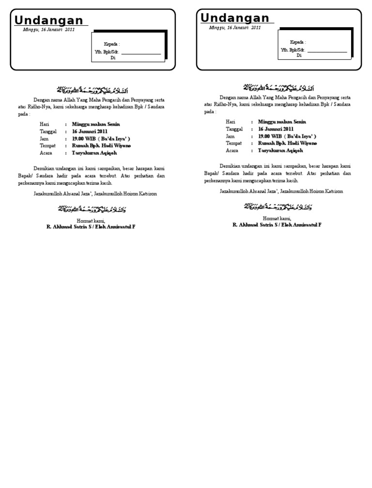 Oh iya tidak lupa kami sertakan contoh surat undangan syukuran pernikahan dalam format msword document sudah di format khusus untuk undangan selebaran. Kepada yth ibu zazkia sekeluarga di perum indah malang. Undangan format msword sekarang ini penggunaan microsoft word sudah tidak asing lagi di jaman komputerisasi disini saya hanya share format undangan di di buat dari msword. Contoh kartu ucapan syukur atas kelahiran anakpada kesempatan kali ini saya akan memposting mengenai contoh template kartu brosur ucapan syukuran kelahiran yang saya buat dengan ms word untuk lebih mudah diedit dan banyak orang yang telah familiar dengan salah satu aplikasi pengolah kata ini. Contoh surat undangan pernikahan wah kalau ini saya belum punya ada sih mbak rofiqo coba besok saya mintakan ya. Di bawah ini ada beberapa link jenis undangan yang di buat menggunakan ms word.