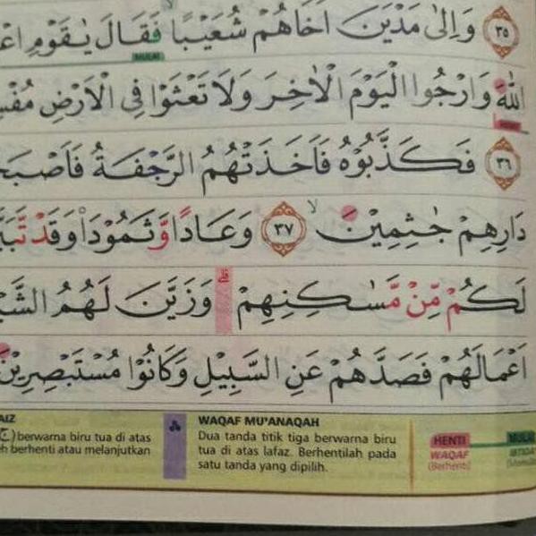 Selain disebut waqaf muanaqah juga disebut dengan nama waqaf tanuq waqaf muraqabah dan waqaf tajadzub. Contoh waqaf muraqabah muanaqah terdapat dalam surat al baqarah ayat 2. Tanda waqaf muanaqah yaitu. Contoh bacaan tanda waqaf lazim beserta nama suratnya dalam ayat alquran lebih dari brainly. Apabila berhenti di kata pertama maka sambung pada kata kedua. Ia adalah dua tanda yang masing masing berupa tiga titik.