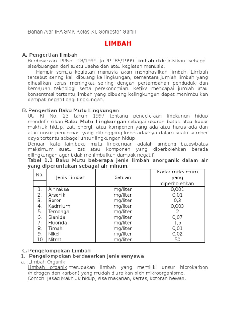 Asbes karbondioksida hydrogen. Sebutkan contoh senyawa yang dapat digolongkan kedalam limbah bersifat reaktif. Limbah adalah benda yang dibuang baik berasal dari alam ataupun dari hasil proses teknologi. Logam dan non logam adalah jenis sifat perbedaan contoh untuk pembahasan kali ini kami akan mengulas mengenai apresiasi yang dimana dalam hal ini meliputi pengertian sifat jenis dan contoh nah agar dapat lebih memahami dan dimengerti simak ulasan selengkapnya dibawah ini. Limbah diartikan sebagai sisa hasil produksi atau buangan yang kehadirannya tidak lagi dikehendaki di lingkungan karena sudah tak memiliki nilai ekonomi serta ekologi. Sebutkan contoh senyawa yang dapat digolongkan kedalam limbah bersifat reaktif.